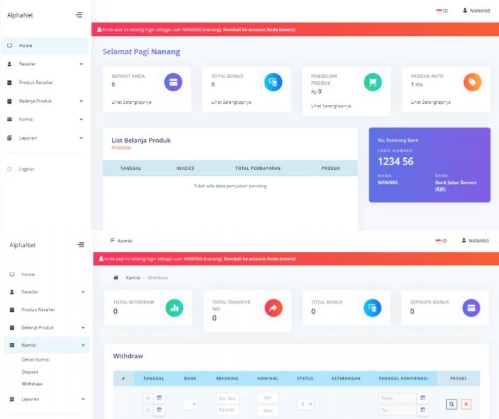 Setiap reseller AlphaNet menerima situs web replikasi sendiri